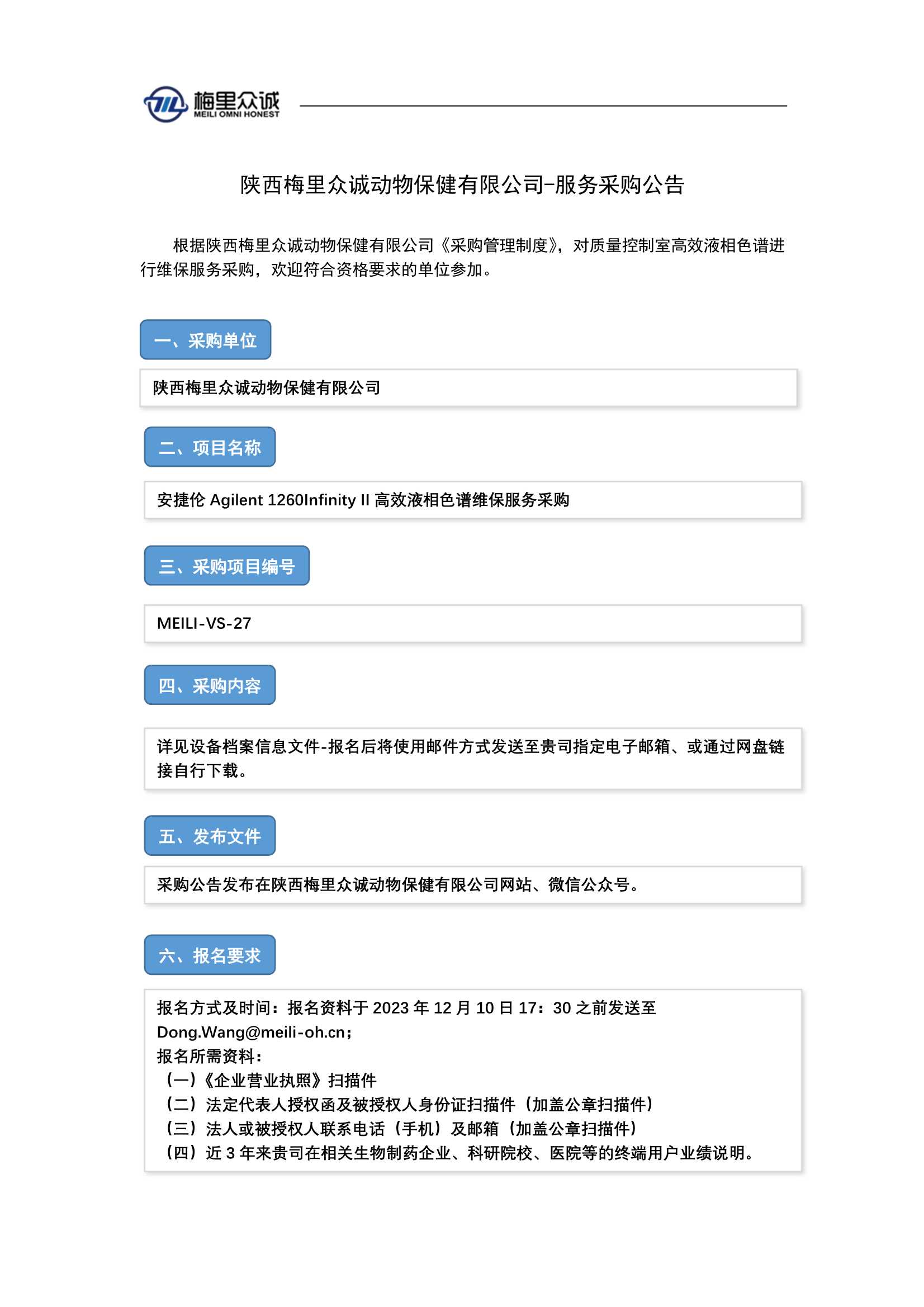 陜西梅里眾誠動物保健有限公司-服務采購公告