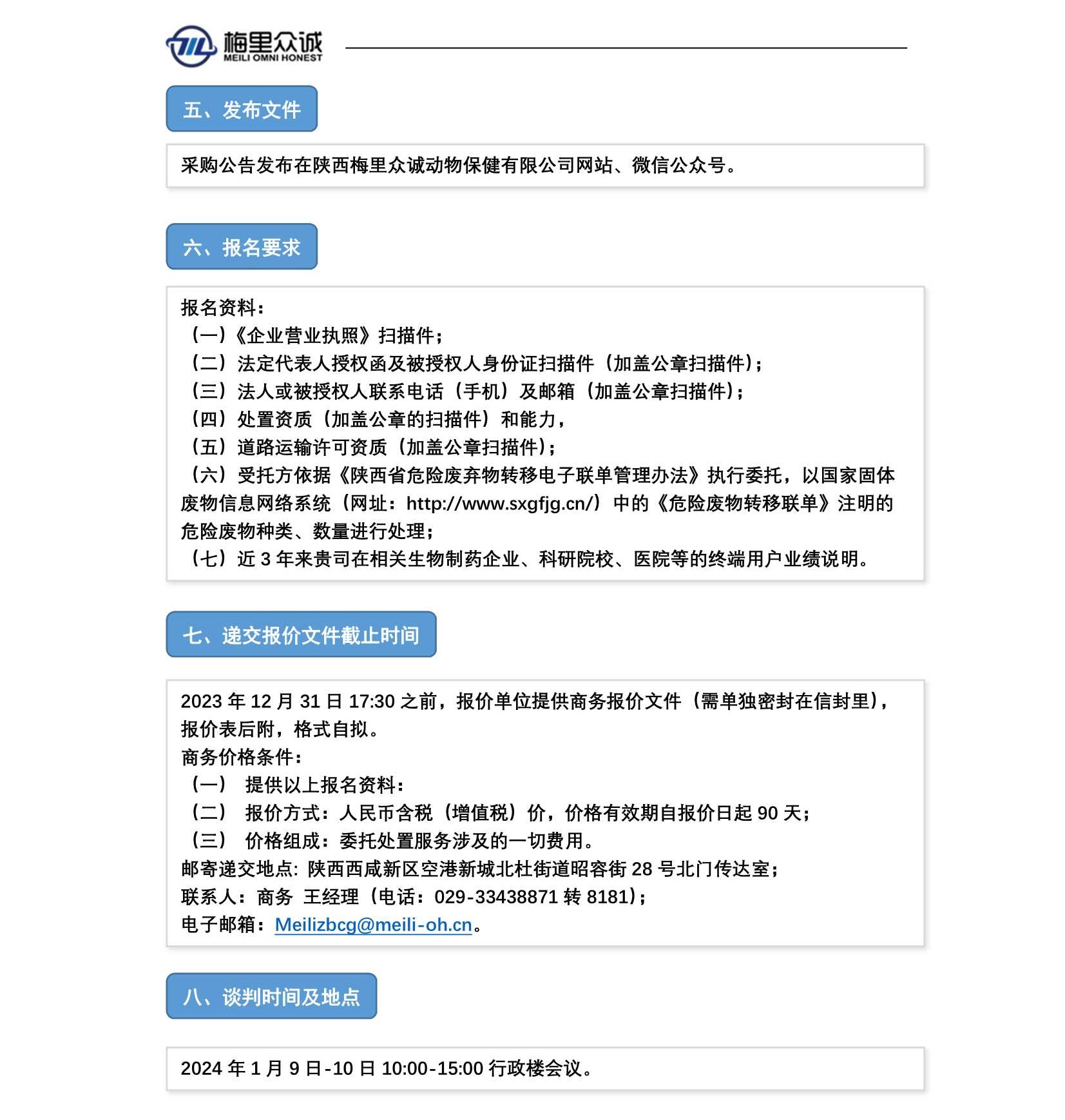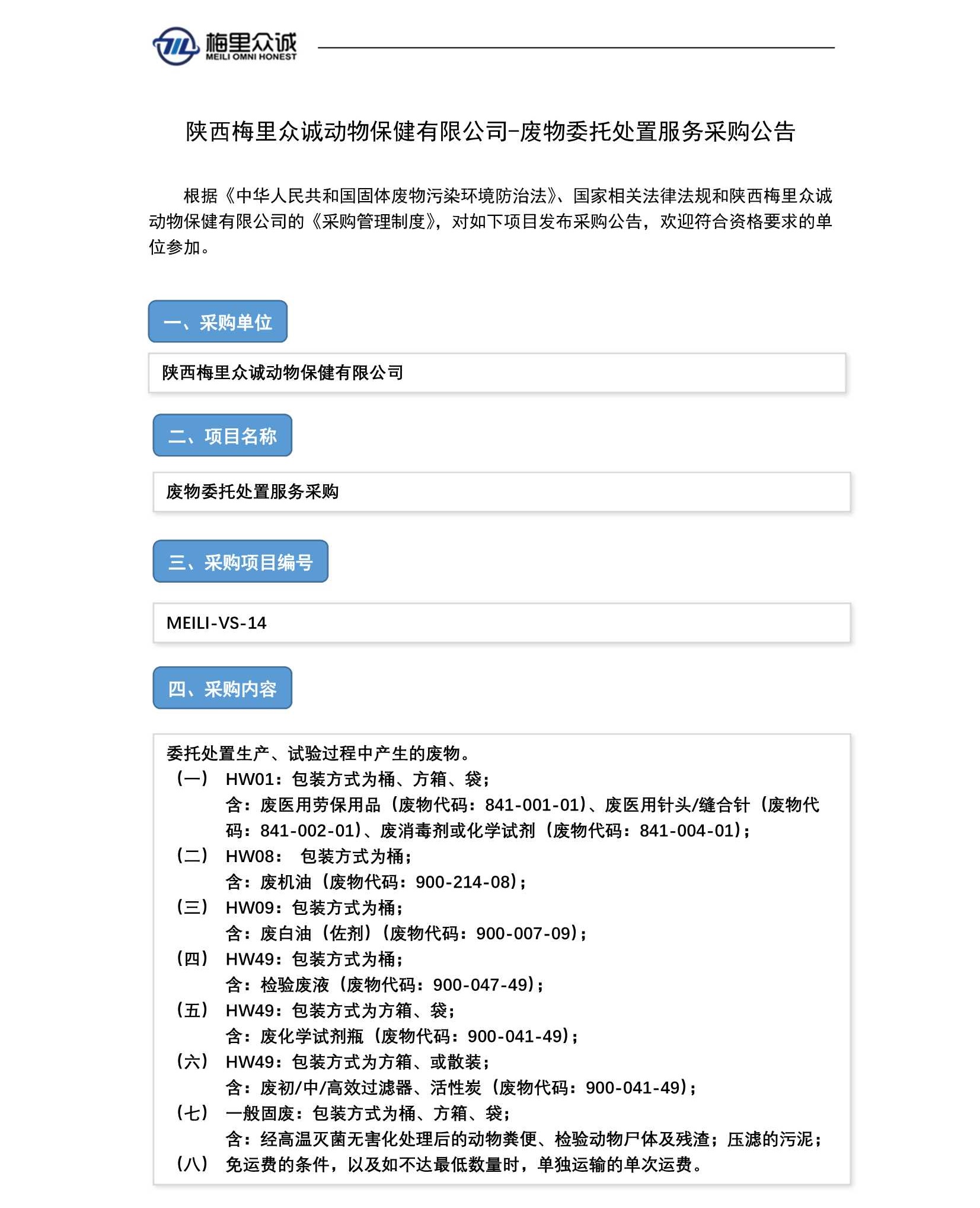 陜西梅里眾誠動物保健有限公司-廢物委托處置服務采購公告